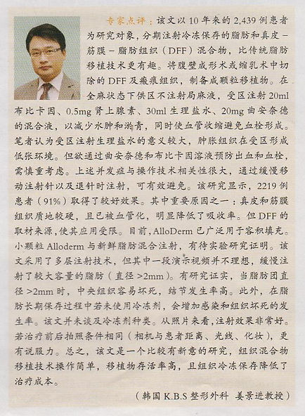 姜景进博士, 对于脂肪干细胞运用在美容整形外科领域的基本概念, 医学与哲学, 第35卷. 28:10-13, 2014年3月, ISSN 1002-0772 CN 21-1093/R